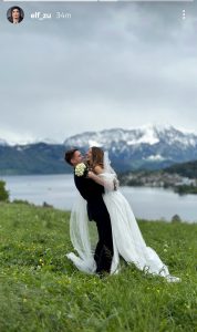 Objavila je fotografije sa svadbe na kojima mlada blista u elegantnoj vjenčanici, dok je mladoženja također izgledao svečano i dostojanstveno. Uz fotografije je napisala i kratku poruku: „Srećno, lijepi moji.“